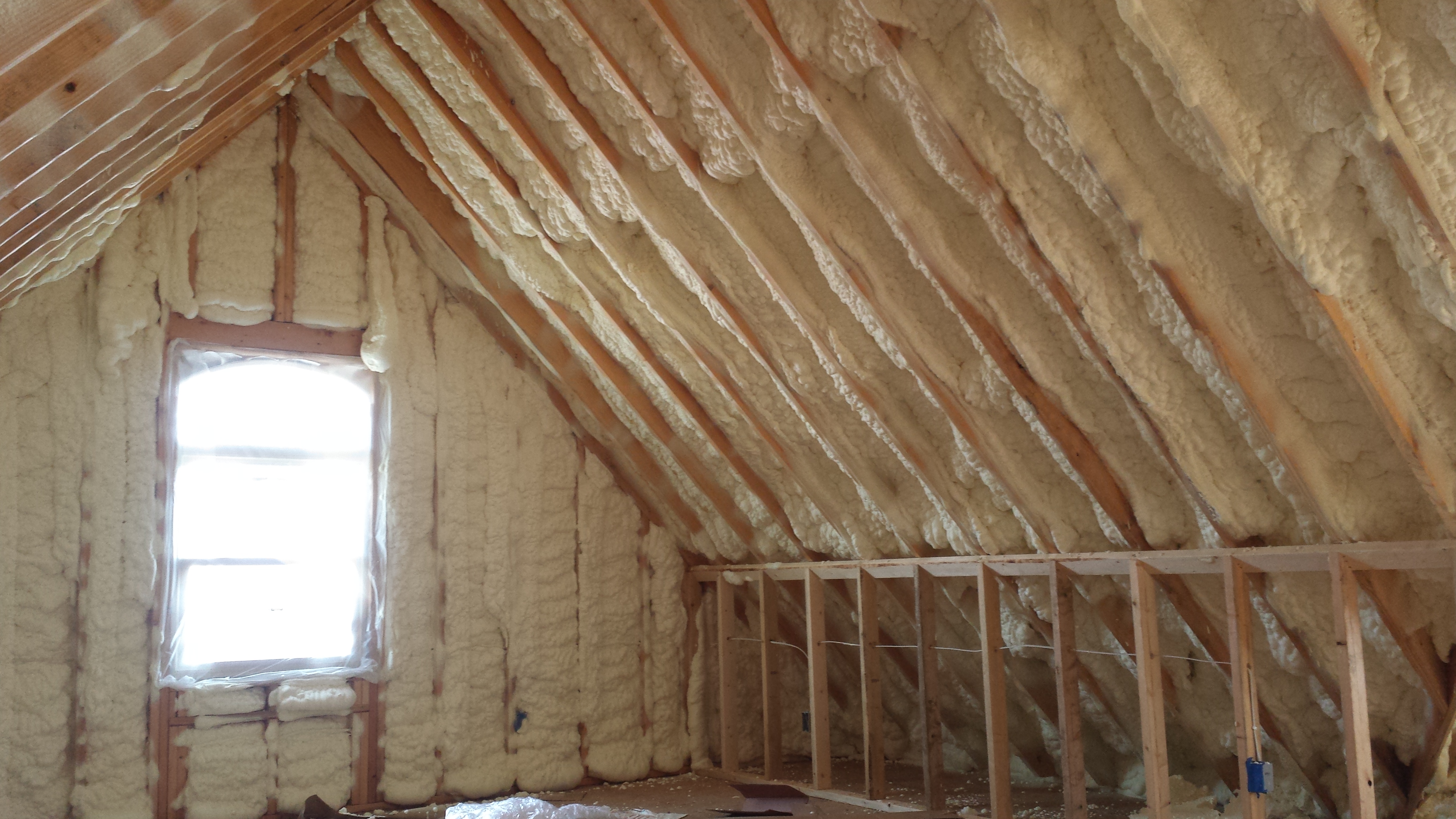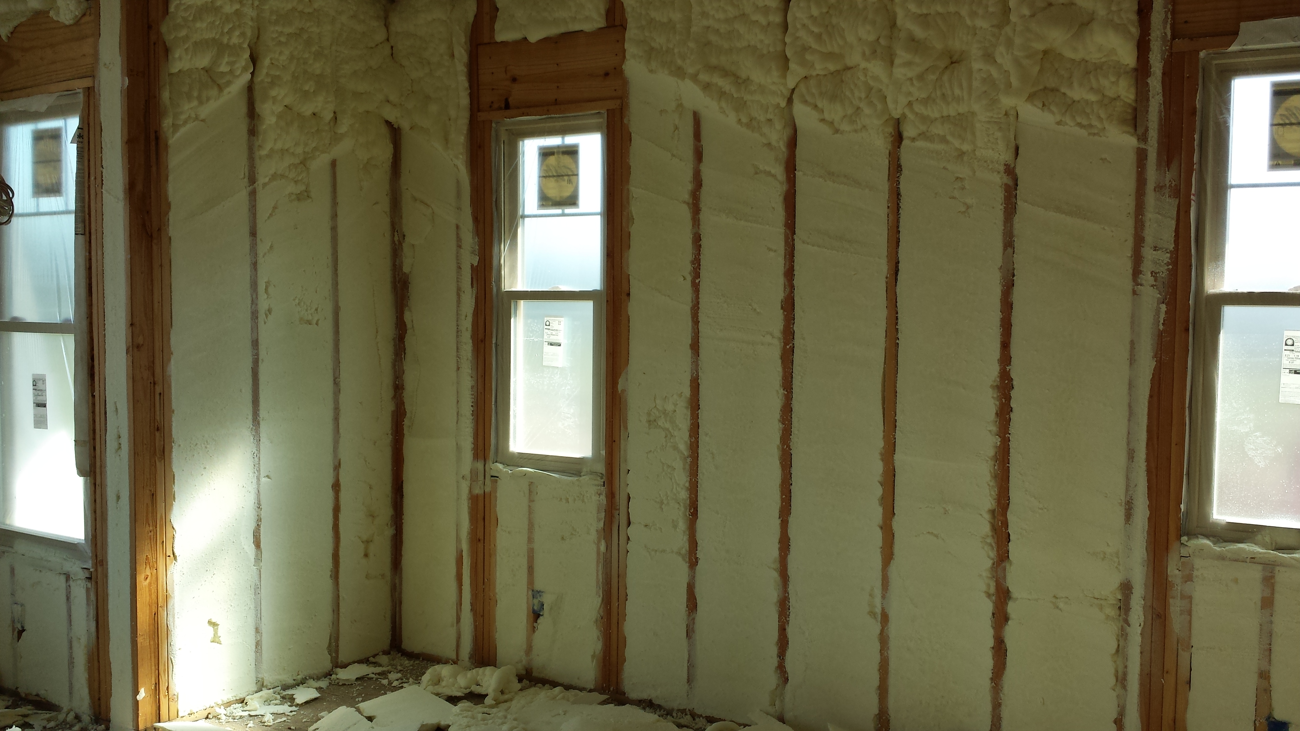The basement was sprayed with 3″ of foam throughout the foundation walls. The main floor was insulated with 5″ of foam in all of the wood framed exterior walls and the attic was insulated with 5″ of open cell spray foam.